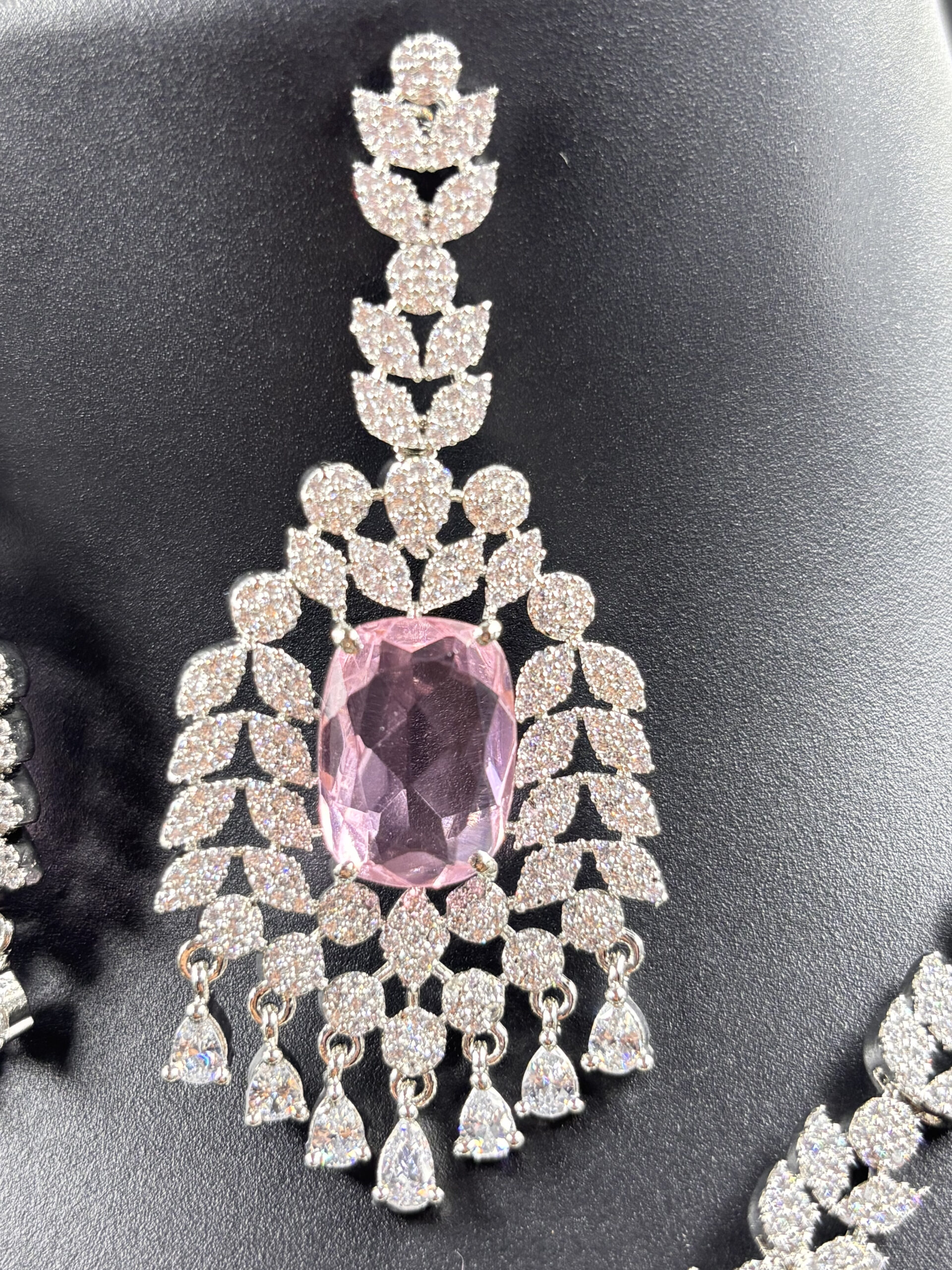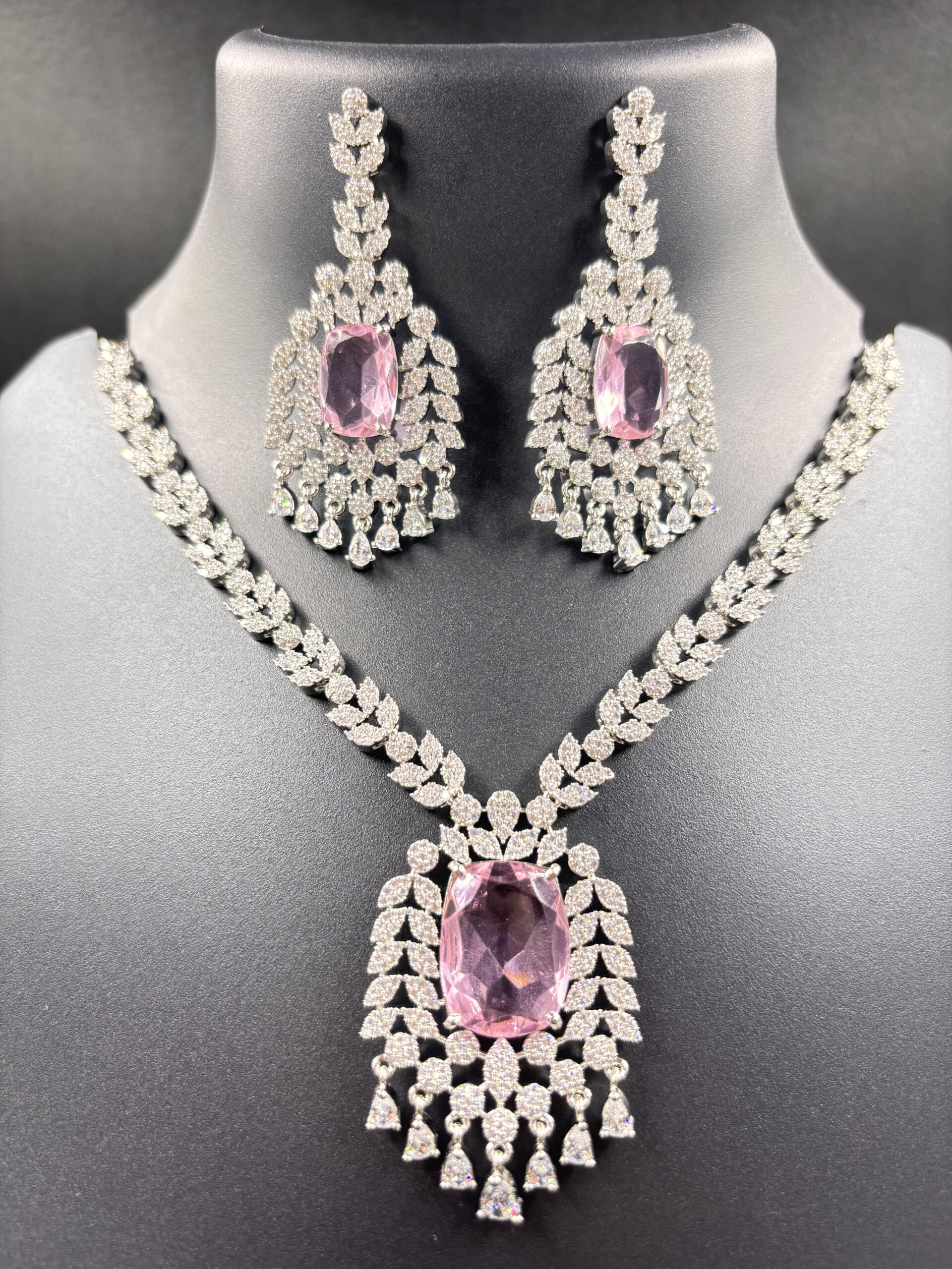 Crafted in premium silver-tone imitation metal, the structured yet elegant design ensures durability and comfort. Perfect for weddings, festive celebrations, receptions, and evening occasions, this necklace set pairs effortlessly with ethnic wear, sarees, lehengas, and Indo-western ensembles.